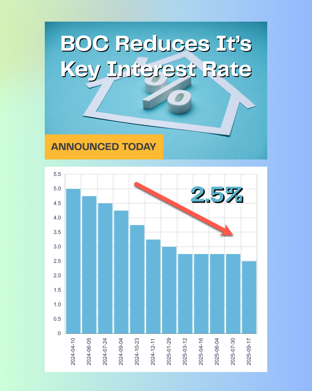 The Bank of Canada has just lowered its key interest rate again — from 2.75% down to 2.5%.